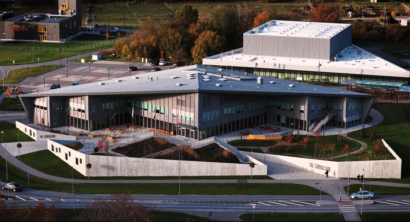 Jagame kaunist videot Rae Gümnaasiumist linnulennult sügisel 2025.