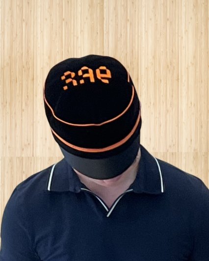 Koolimüts on mustast puuvillasametist. Pealael on tikitud oranž kooli logo. Enne mütsi tellimist mõõda kindlasti ära oma peaümbermõõt.