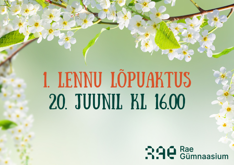 Rae Gümnaasiumi 1. lennu lõpuaktus toimub reedel, 20. juunil algusega kell 16.00 meie kooli aatriumis.