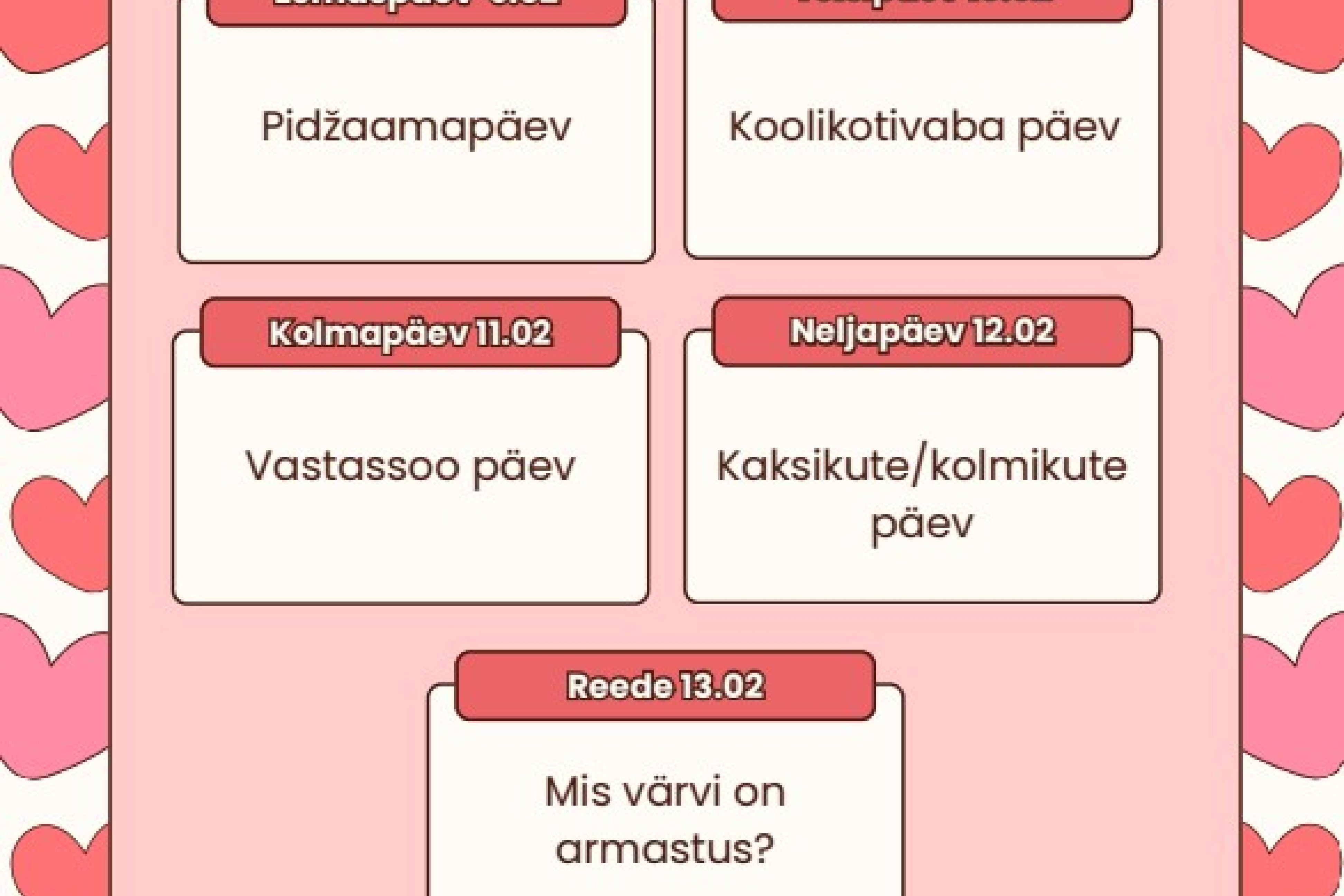 Õpilasesinduse eestvedamisel tähistame koolis sõbrapäeva terve sõbrapäeva (stiili)nädalaga.